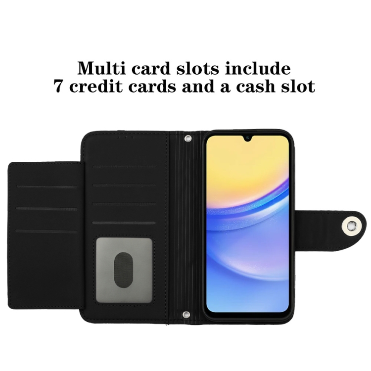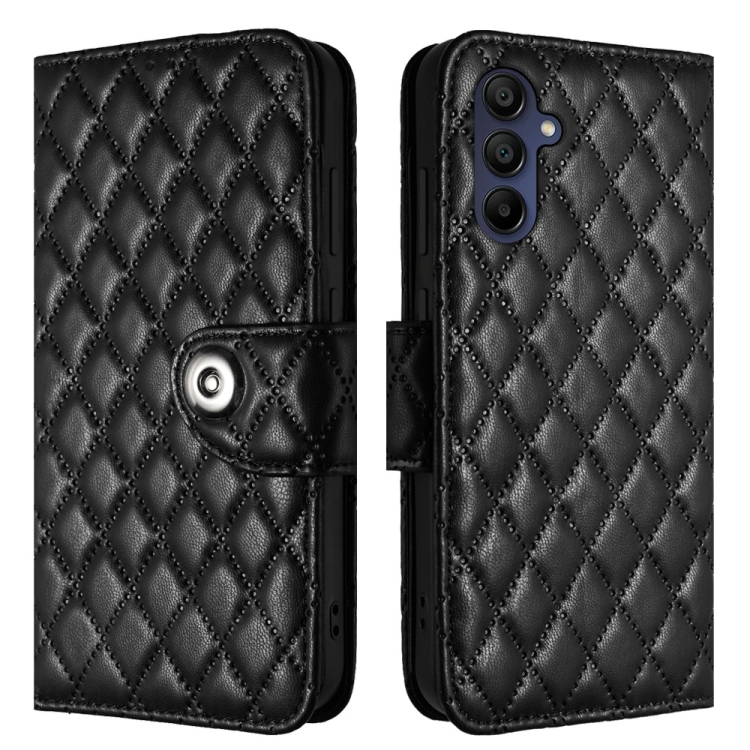Funda para Samsung Galaxy A35 Cuero con Tapa Textura Rómbica y Cordón (Negro)