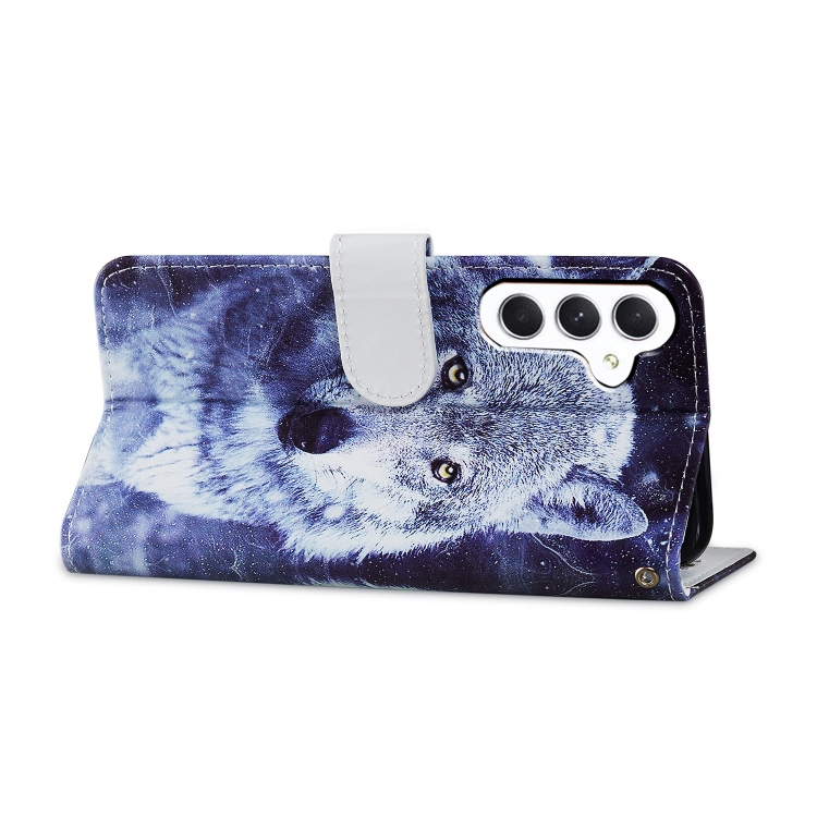 Funda para Teléfono Samsung Galaxy A35 Cuero Tapa Horizontal Patrón Pintado (Lobo Blanco)