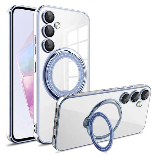 Estuche para Teléfono Samsung Galaxy A35 Galvanoplastia Magsafe Soporte Rotación 360 Grados a Prueba de Golpes (Azul)