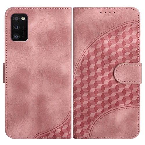 Funda de Cuero para Samsung Galaxy A41 Yx0060 con Relieve y Cabeza de Elefante con Cordón (Rosa)