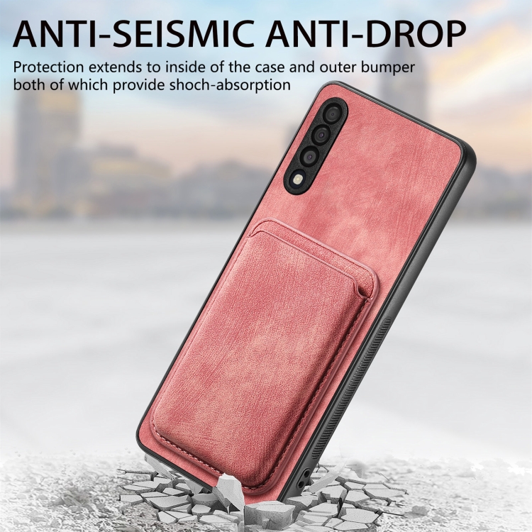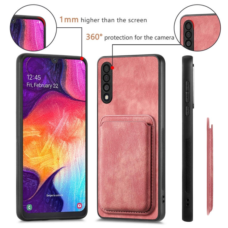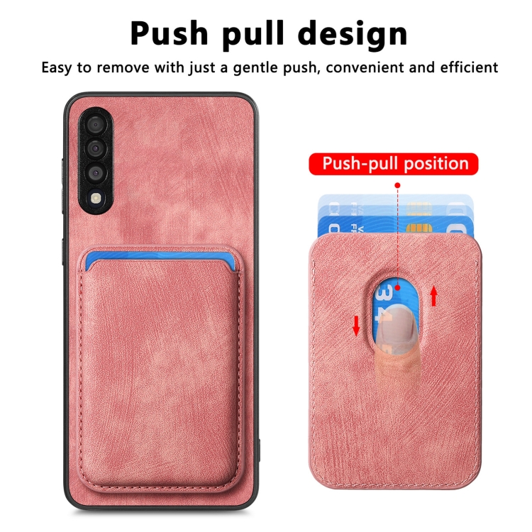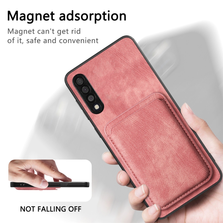 Funda de Teléfono Samsung Galaxy A50 Magnética con Bolsa de Tarjeta de Cuero Retro (Rosa)