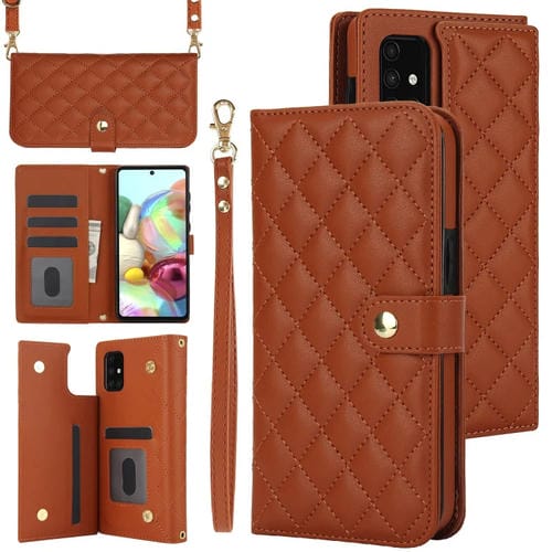 Estuche para Teléfono Samsung Galaxy A51 4G Crossbody Cuero Rómbico Multifunción (Marrón)