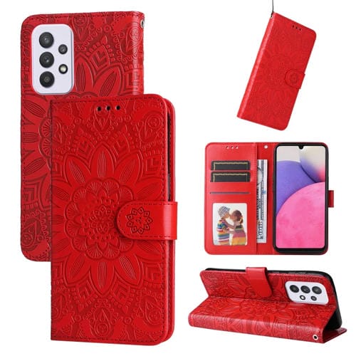 Estuche para Teléfono Samsung Galaxy A52 4G 5G Cuero Estampado Girasol En Relieve (Rojo)
