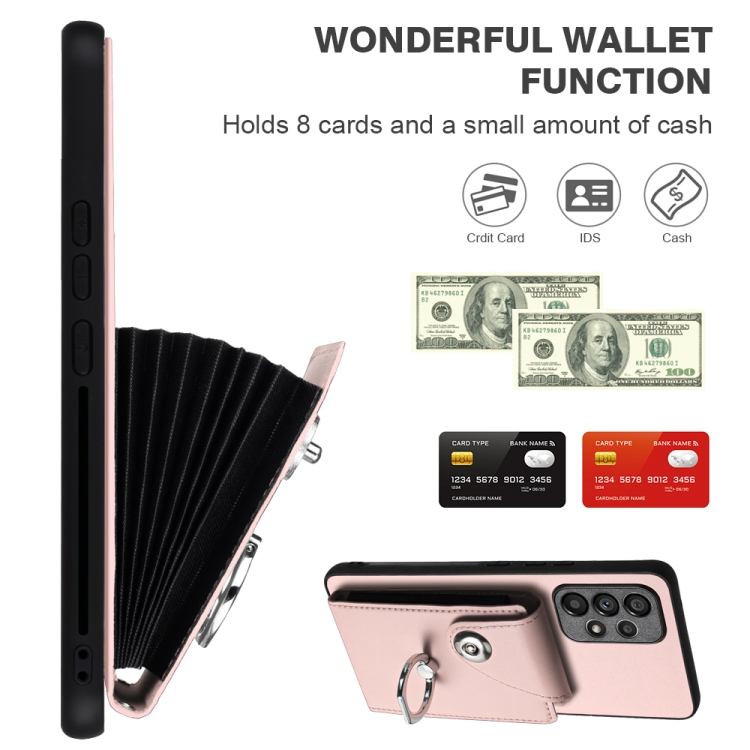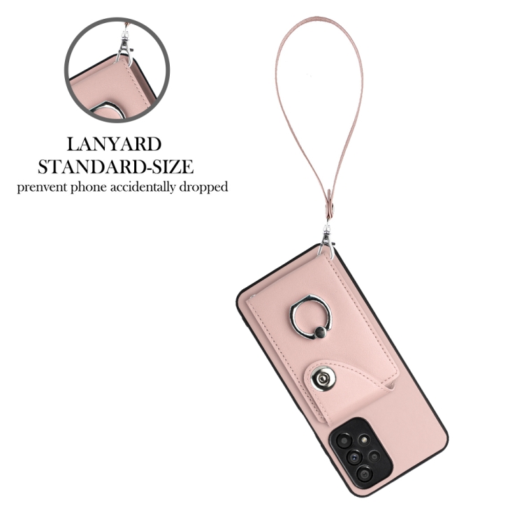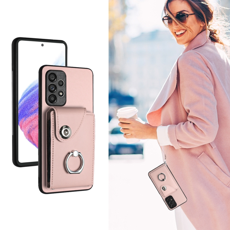Funda para Teléfono Samsung Galaxy A52 4G / 5G Pu con Soporte para Anillo y Bolsa para Tarjeta con Cordón (Rosa)