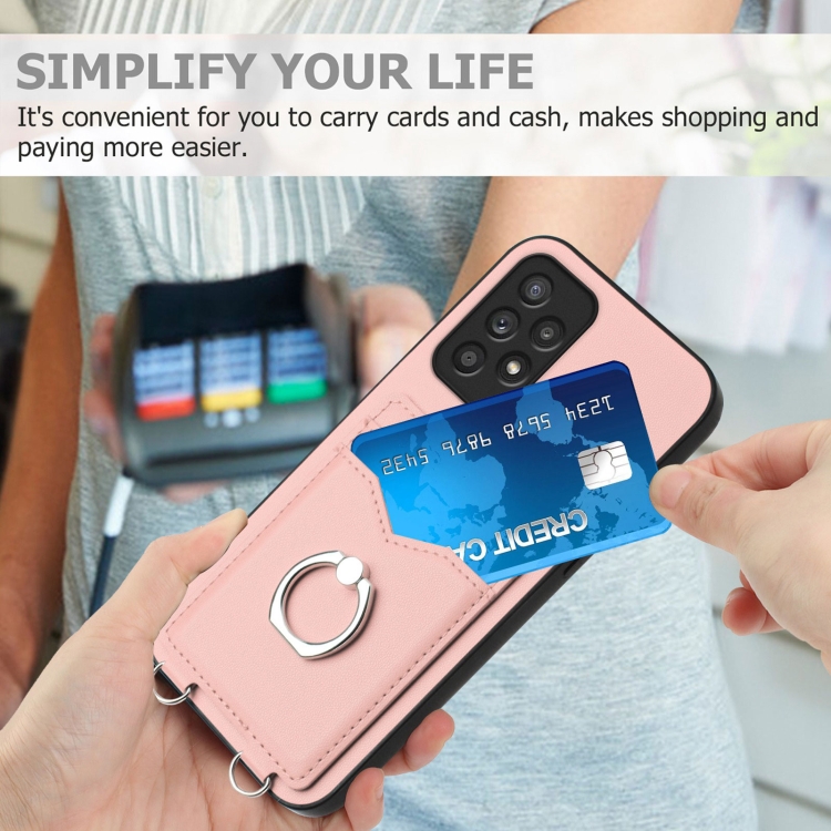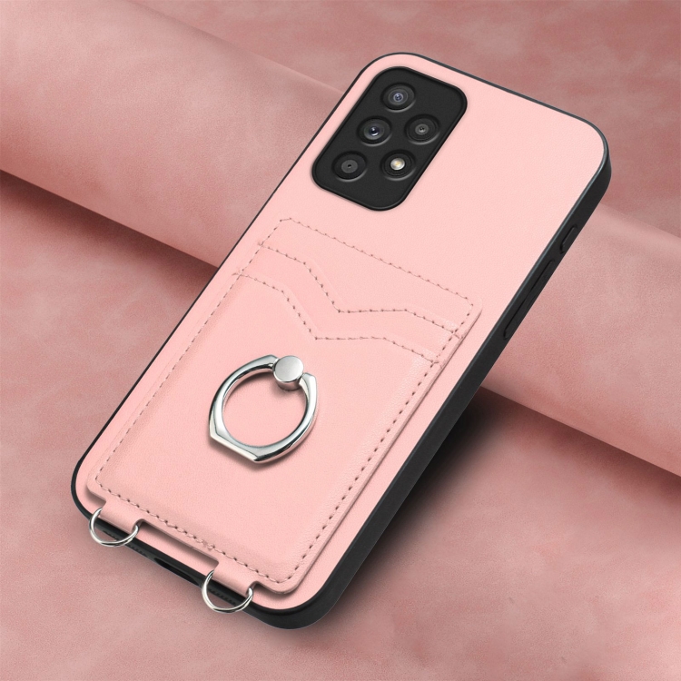 Estuche para Teléfono Samsung Galaxy A52 R20 con Soporte para Tarjeta con Anillo (Rosa)