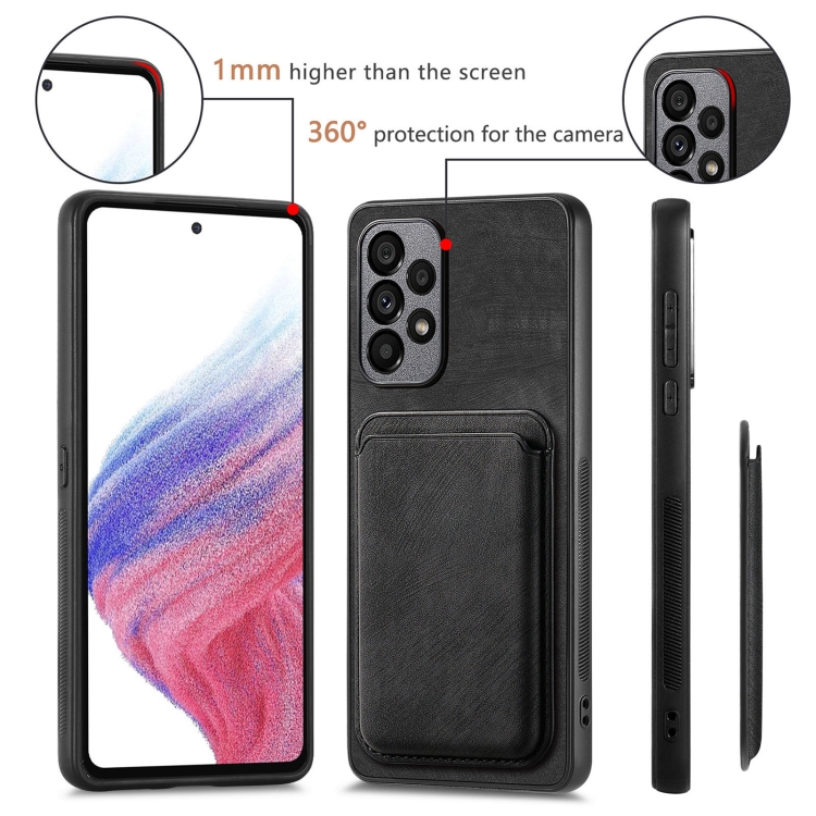Funda de Teléfono Samsung Galaxy A53 Magnética con Bolso de Tarjeta de Cuero Retro (Negro)