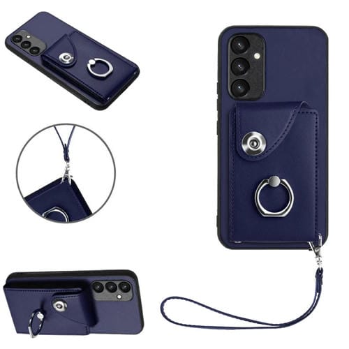 Funda para Teléfono Samsung Galaxy A54 5G Pu con Soporte para Anillo y Bolsa para Tarjeta con Cordón (Azul)