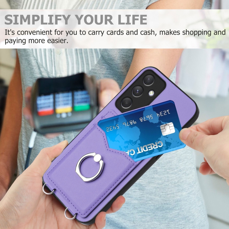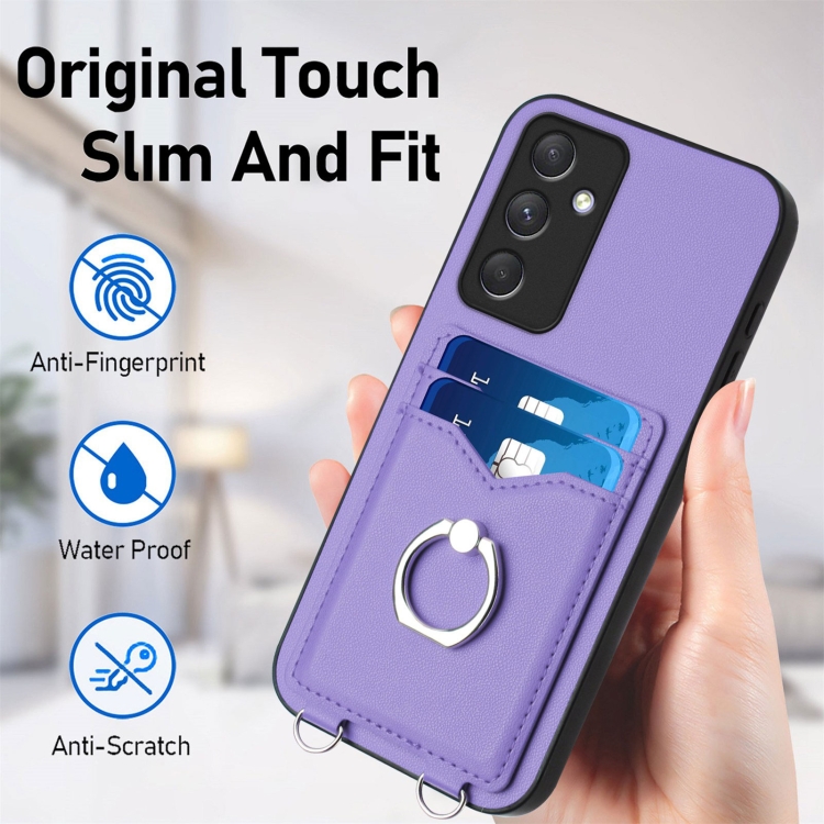 Estuche para Teléfono Samsung Galaxy A54 5G R20 con Soporte y Tarjeta (Púrpura)