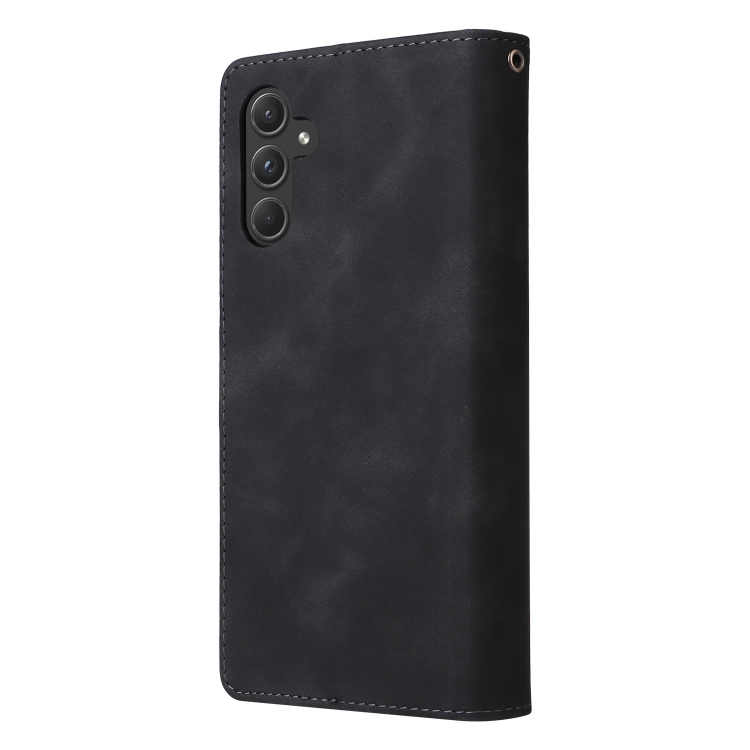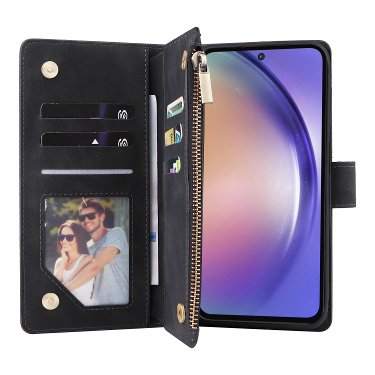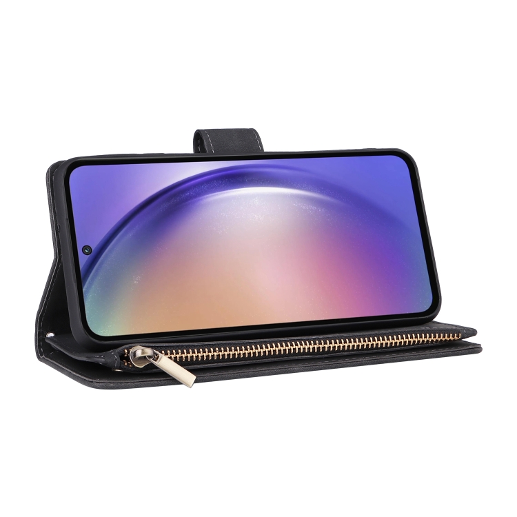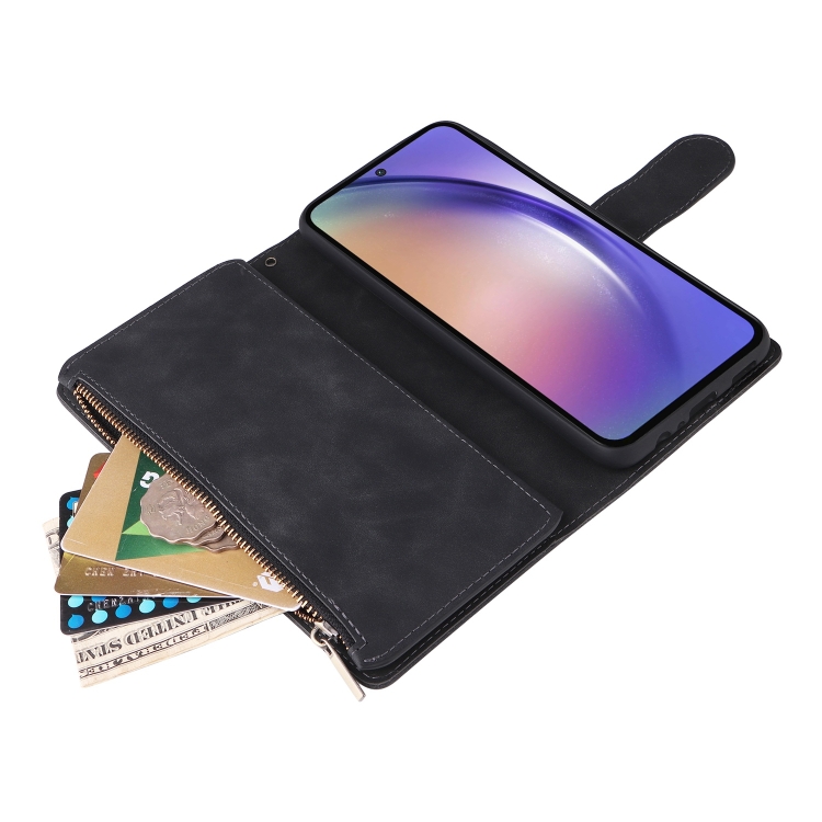 Funda de Cuero Samsung Galaxy A55 5G con Billetera y Cremallera Esmerilada Multifuncional (Negro)