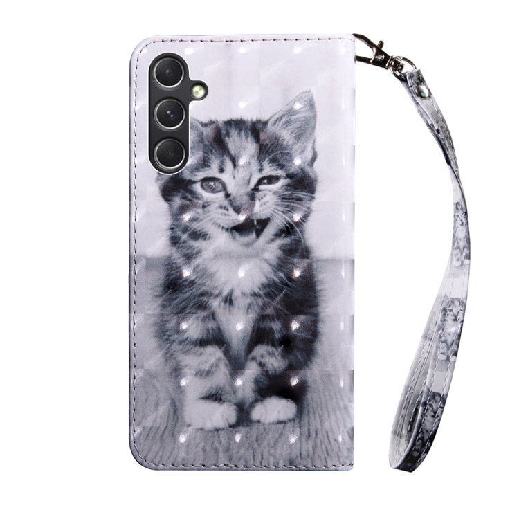 Funda de Cuero Samsung Galaxy A55 5G Pintada en 3D Gato Sonriente