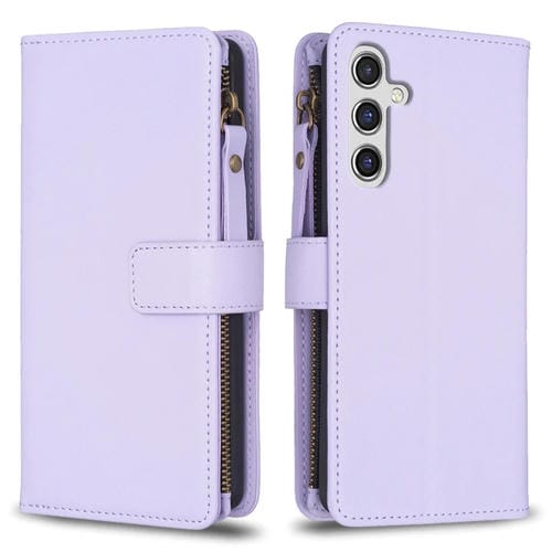 Funda para Teléfono Samsung Galaxy A55 Cartera con 9 Ranuras y Cremallera (Púrpura Claro)