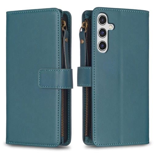 Funda para Teléfono Samsung Galaxy A55 Cartera con 9 Ranuras y Cremallera Cuero (Verde)