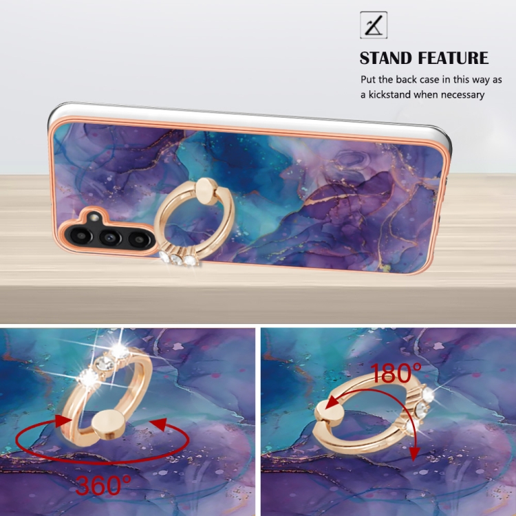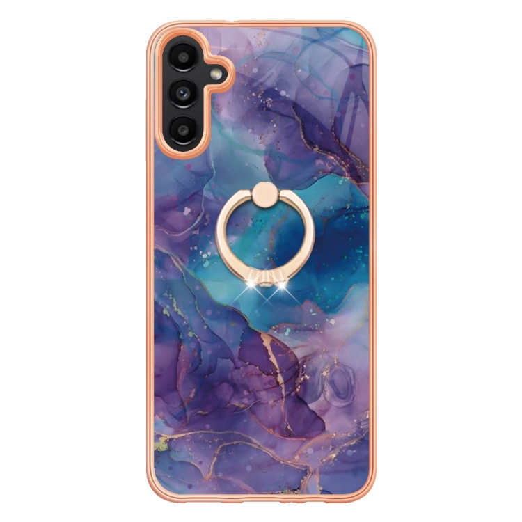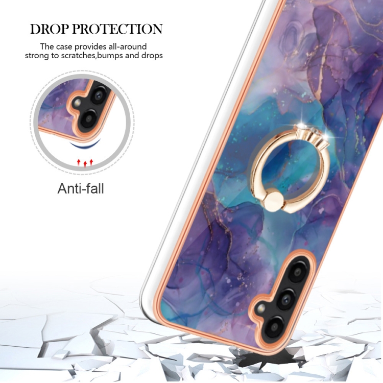 Estuche para Teléfono Samsung Galaxy A55 Imd Doble Cara Mármol Galvanizado con Anillo (Púrpura)