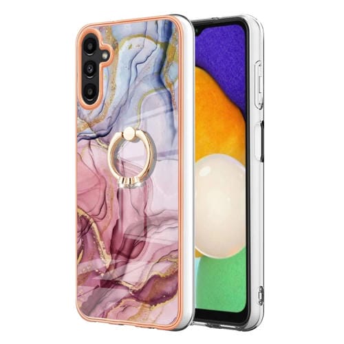 Estuche para teléfono Samsung Galaxy A55 Imd doble cara Mármol galvanizado con anillo (Rose Red)