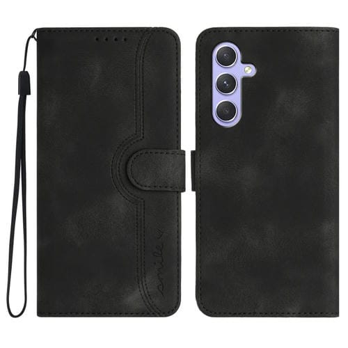 Funda para Samsung Galaxy A55 Cuero Sensación de Piel Patrón de Corazón (Negro)