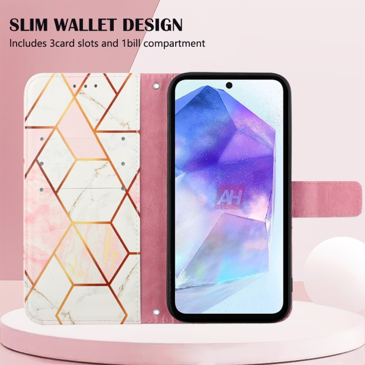 Funda de Cuero para Samsung Galaxy A55 Pt003 con Tapa y Patrón de Mármol (Rosa Blanco)