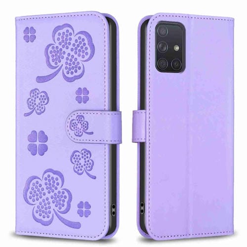 Funda de Cuero Samsung Galaxy A71 4G con Relieve de Cuatro Hojas (Púrpura)