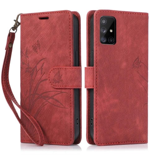 Funda para Teléfono Samsung Galaxy A71 4G Cuero Relieve Mariposa Orquídea (Rojo)