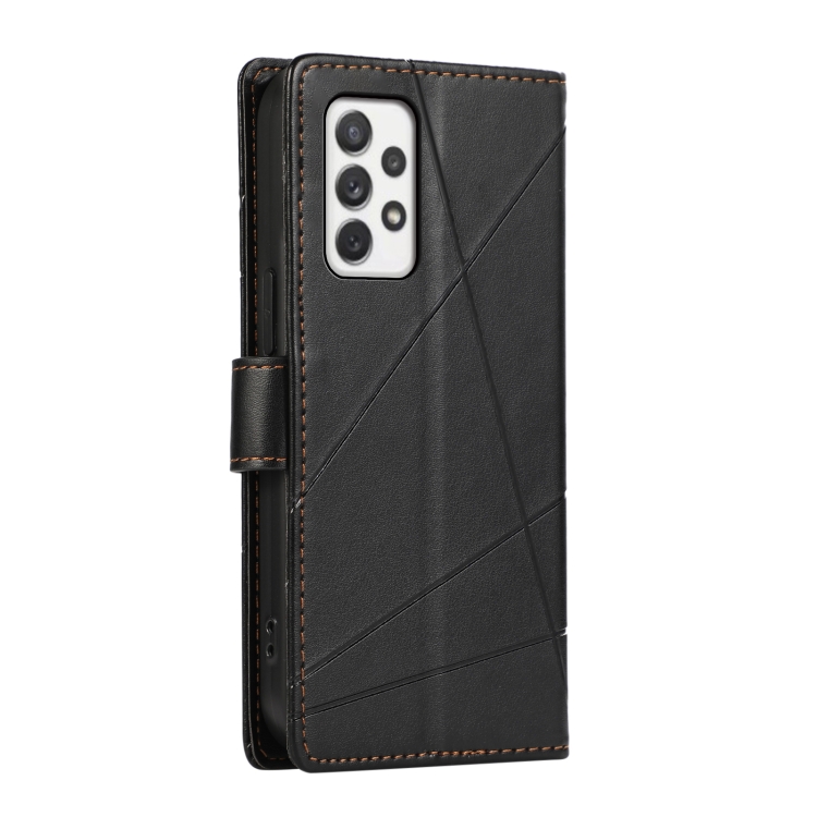 Funda para Teléfono Samsung Galaxy A72 5G con Línea en Relieve Textura Cuero Genuino Pu (Negro)
