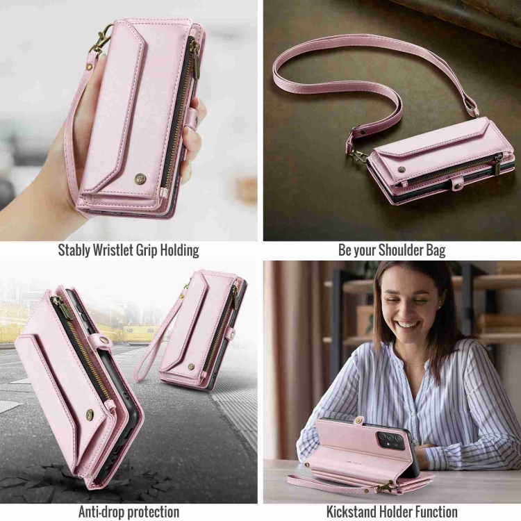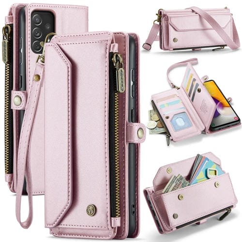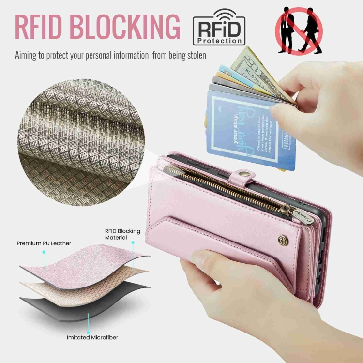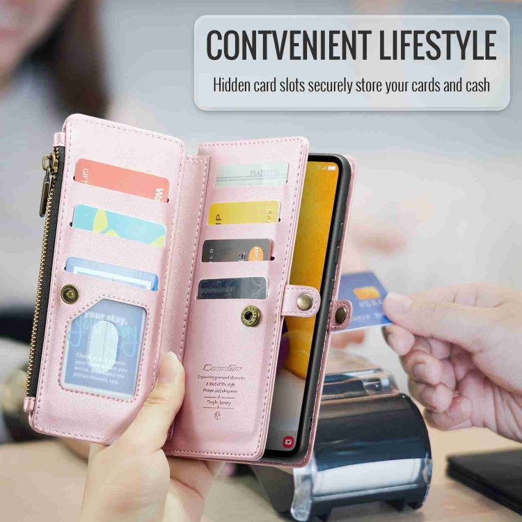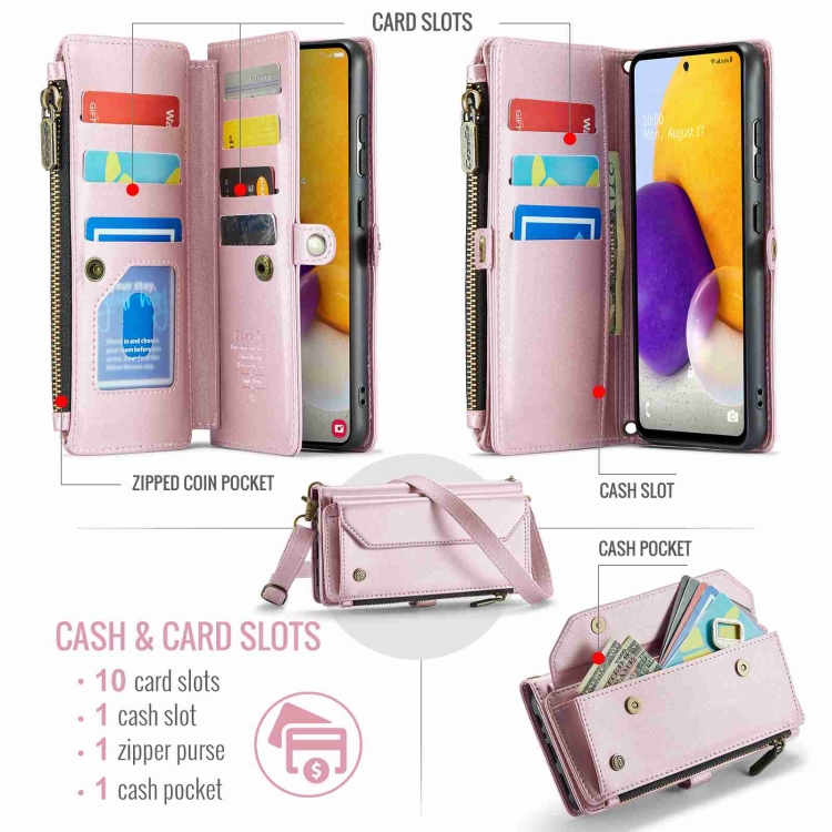 Funda cartera para Samsung Galaxy A72 Caseme C36 con ranuras para tarjetas y cremallera antirrobo Rfid (Rosa)