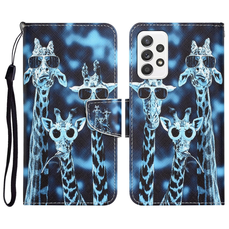 Para Samsung Galaxy A73 5G Estuche para teléfono de cuero con dibujo coloreado (jirafas)