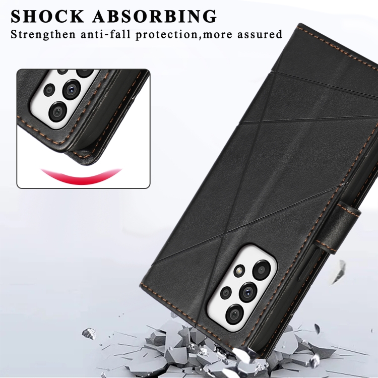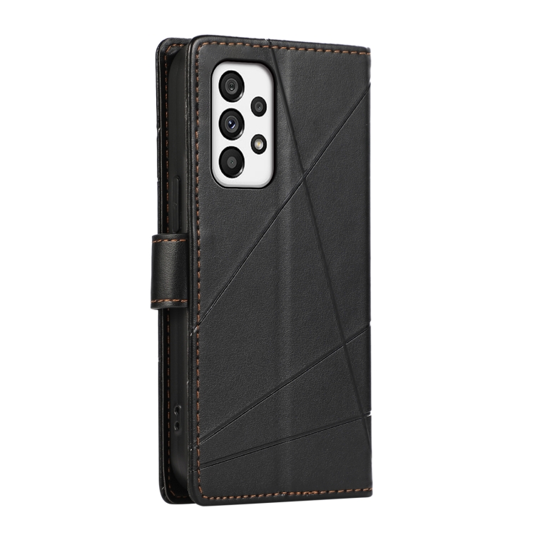 Funda para Teléfono Samsung Galaxy A73 5G Pu con Línea en Relieve y Textura de Cuero Genuino (Negro)