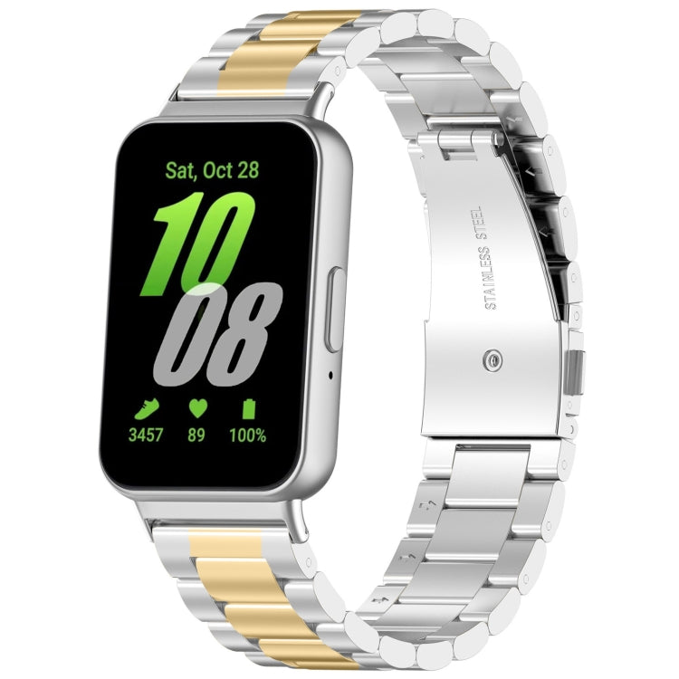 For Samsung Galaxy Fit 3 SM-R390 Three-bead Stainless Steel Metal Watch Band Strap (Silver+Gold)