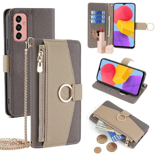 Funda de Cuero Crossbody para Samsung Galaxy M13 Litchi Texture (Gris)