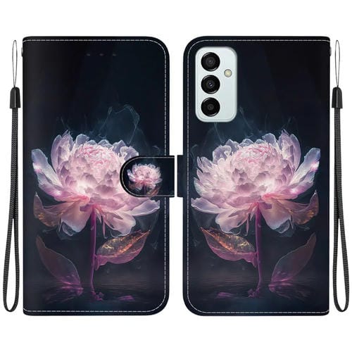 Funda para Teléfono Samsung Galaxy M23 F23 Cuero Dibujo Coloreado Textura de Cristal (Peonía Púrpura)