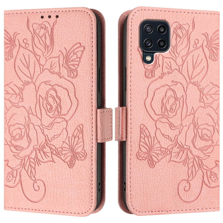 Funda de Cuero Antirrobo para Samsung Galaxy M32 4G Global y M22 con RFID En Relieve (Rosa)