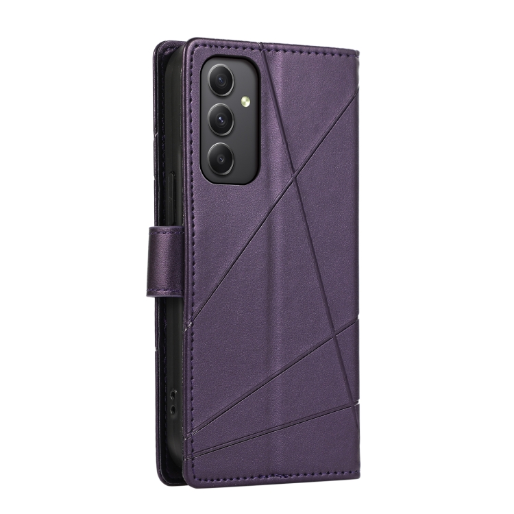 Funda para Teléfono Samsung Galaxy M34 5G con Línea en Relieve y Textura de Cuero Genuino (Púrpura)