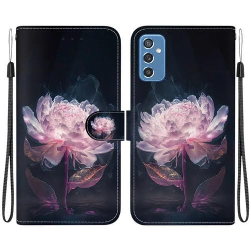 Funda para Teléfono Samsung Galaxy M52 5G Cuero Dibujo Coloreado Textura de Cristal (Peonía Púrpura)