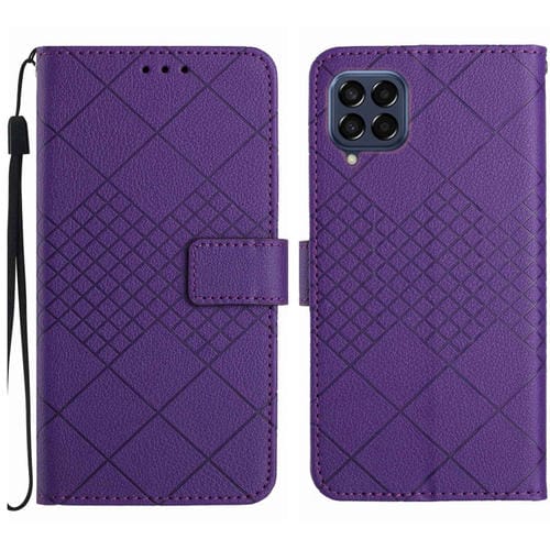 Funda para Samsung Galaxy M53 5G Cuero Textura Rejilla Rómbica (Púrpura)