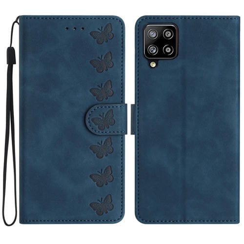 Caja de Teléfono para Samsung Galaxy M53 Seven Butterflies Cuero En Relieve (Azul)