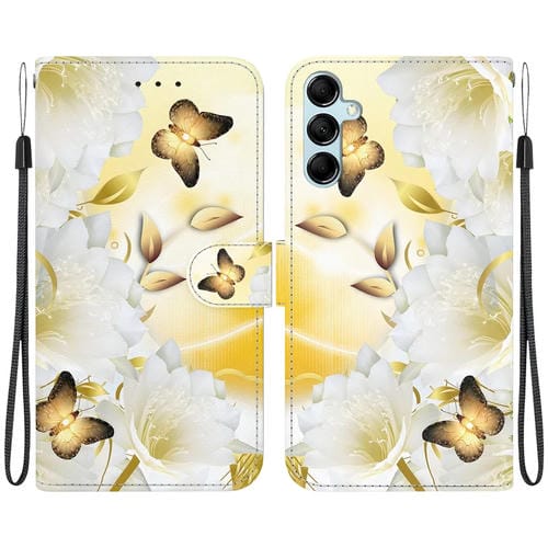 Funda para Teléfono Samsung Galaxy M54 Cuero Dibujo Coloreado Textura de Cristal (Epiphyllum de Mariposa Dorada)