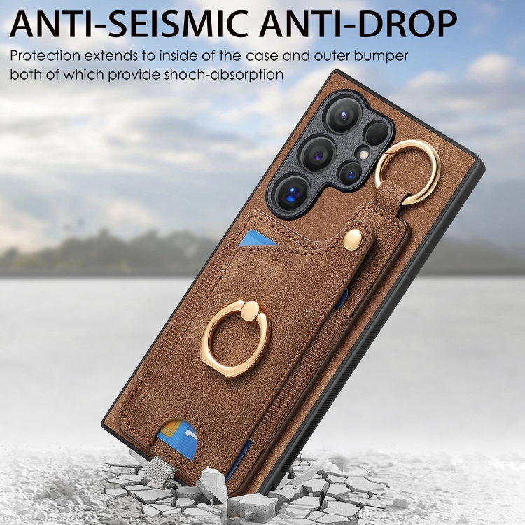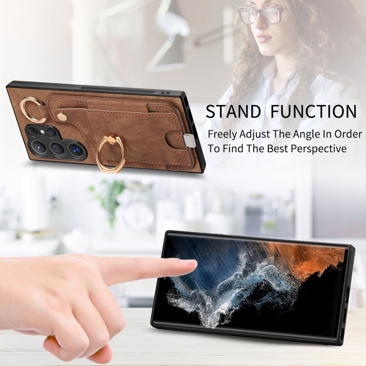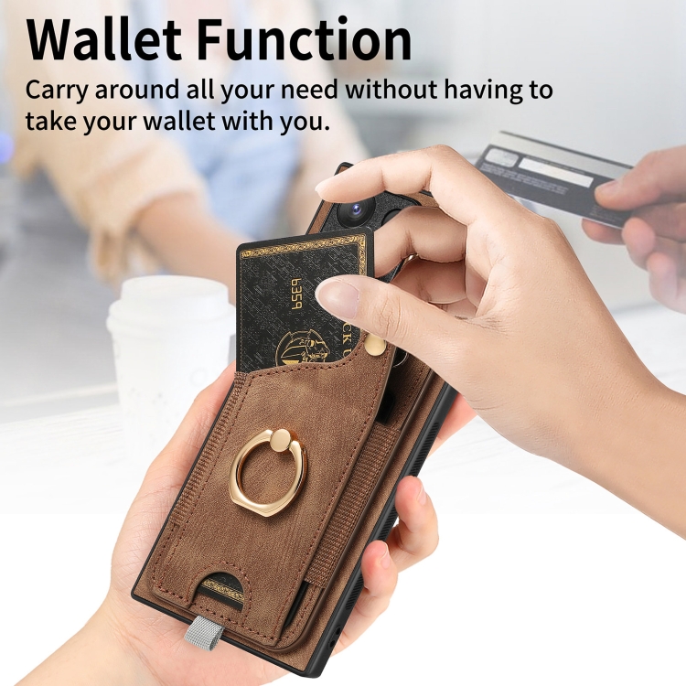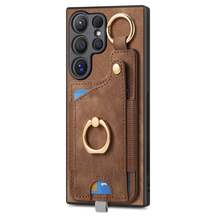 Funda para Teléfono Samsung Galaxy Note10 con Bolsa Tarjeta Anillo y Lazo (Marrón)