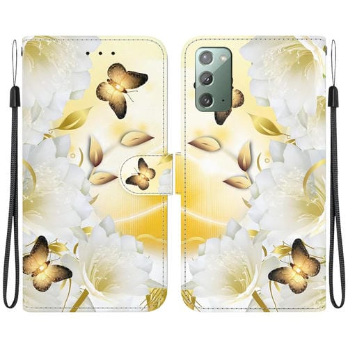 Estuche para teléfono Samsung Galaxy Note20 Cuero Dibujo Coloreado Textura Cristal (Epiphyllum Mariposa Dorada)