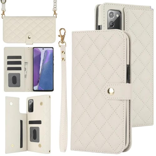 Funda Cruzada de Cuero Samsung Galaxy Note20 Rómbico Multifunción (Blanco)