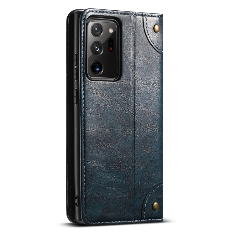 Funda para Teléfono Suteni Samsung Galaxy Note20 Cuero con Hebilla y Textura de Becerro (Azul)