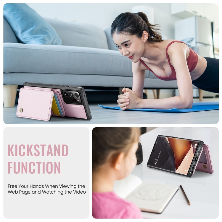 Estuche para Teléfono Samsung Galaxy Note20 Ultra Jeehood J05 Cuero Rfid Estilo Magnético Empresarial (Rosa)