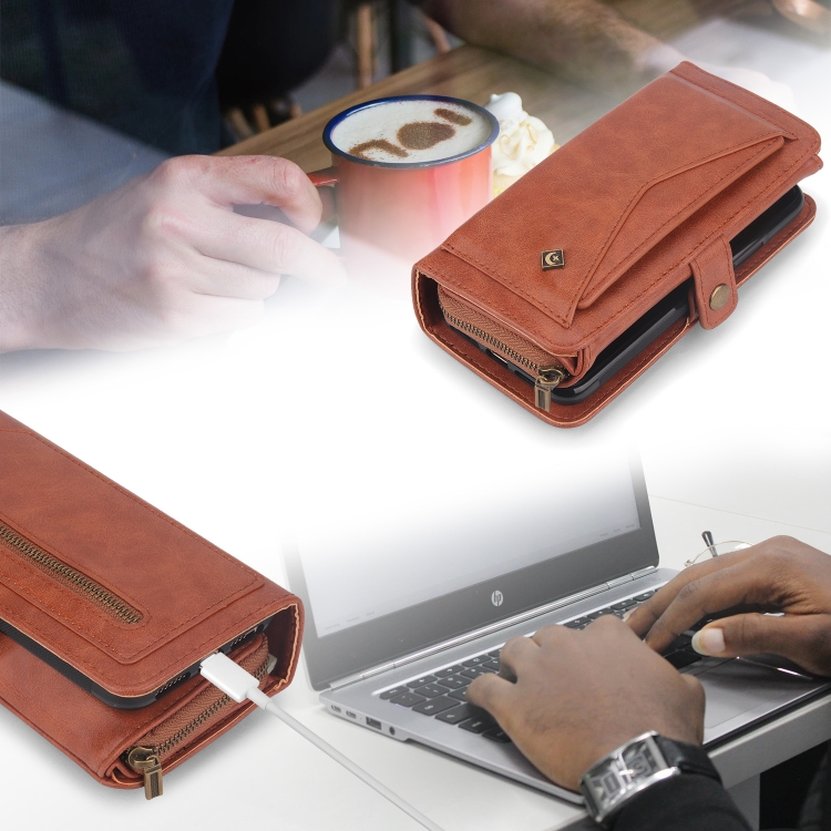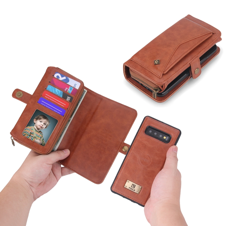 Funda para Teléfono Samsung Galaxy S10 Cuero con Billetera y Cremallera Multifuncional (Naranja)