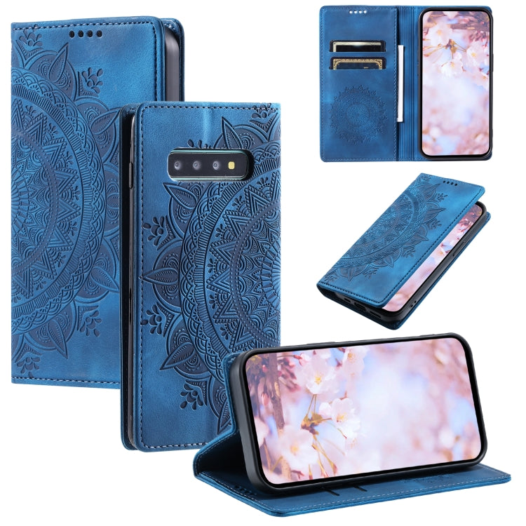 Estuche de Cuero Magnético Totem para Samsung Galaxy S10 + en Relieve (Azul)