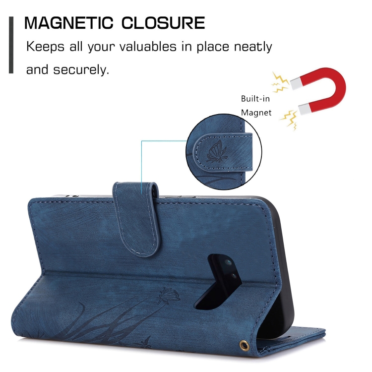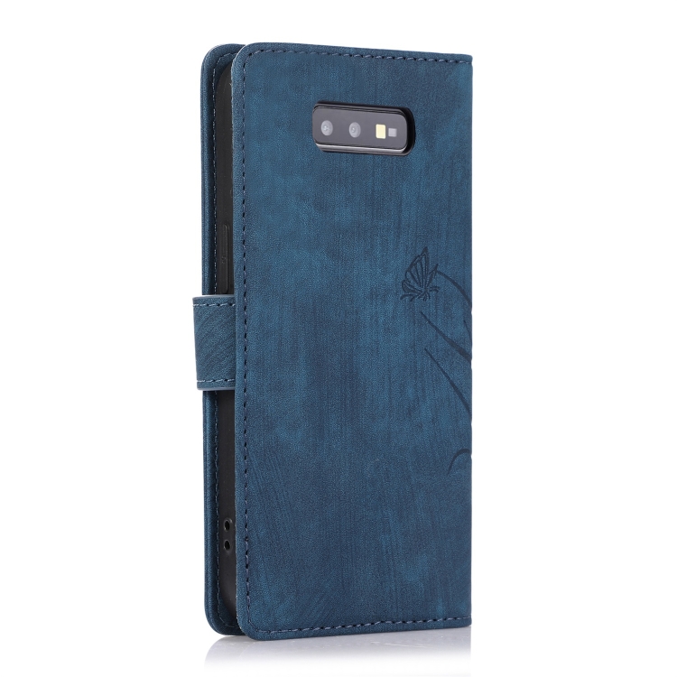 Funda para Teléfono Samsung Galaxy S10E Cuero con Relieve Mariposa Orquídea (Azul)