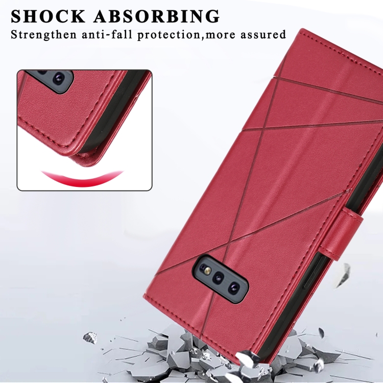 Funda para Teléfono Samsung Galaxy S10E Pu con Línea en Relieve y Textura de Cuero Genuino (Rojo)