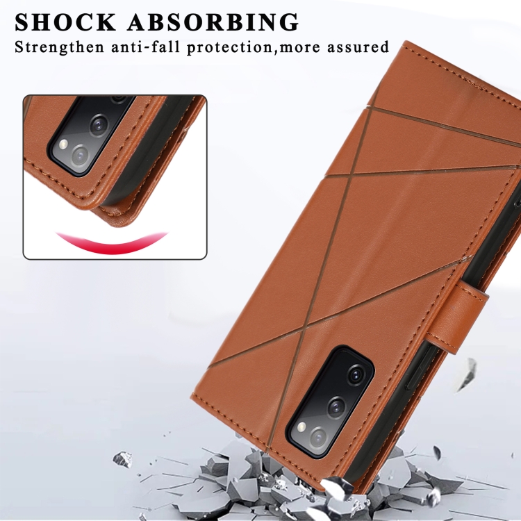 Funda para Teléfono Samsung Galaxy S20 FE con Línea en Relieve y Textura de Cuero Genuino (Marrón)