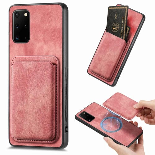 Funda de teléfono Samsung Galaxy S20 con bolsa de tarjeta magnética de cuero retro (Rosa)