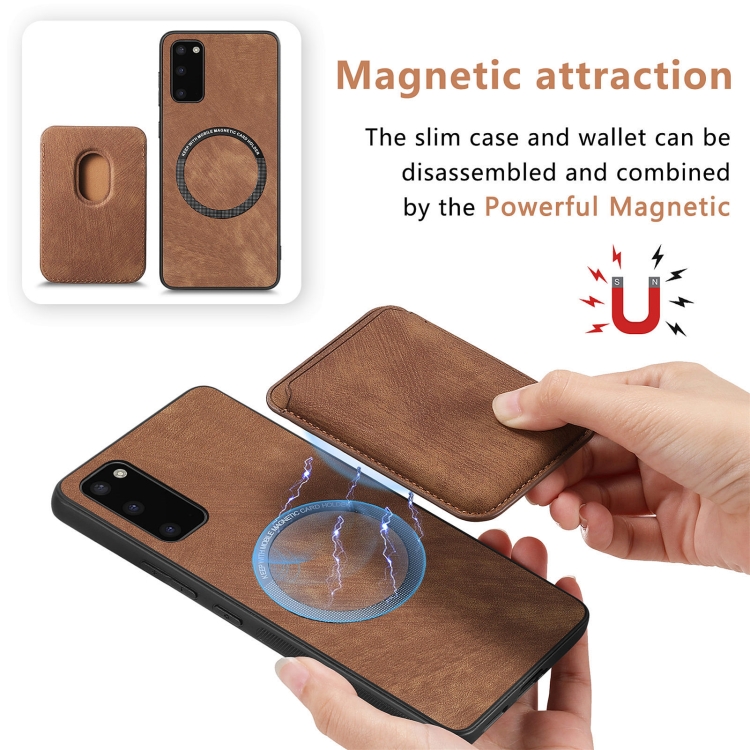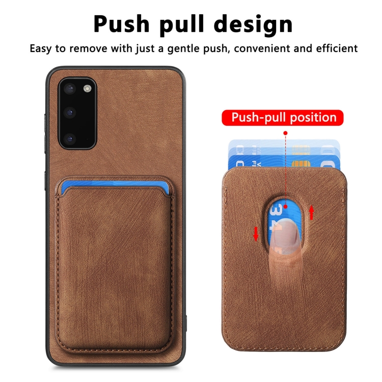 Funda de Teléfono Samsung Galaxy S20 Magnética con Bolso de Tarjeta de Cuero Retro (Marrón)