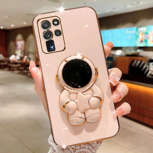 Estuche para Teléfono Samsung Galaxy S20 Ultra Embrace Stars con Soporte Astronauta Galvanizado (Rosa)