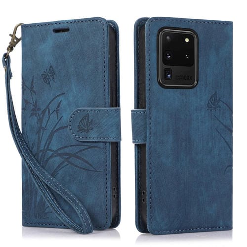 Funda de Cuero Samsung Galaxy S20 Ultra Orchid Butterfly En Relieve (Azul)