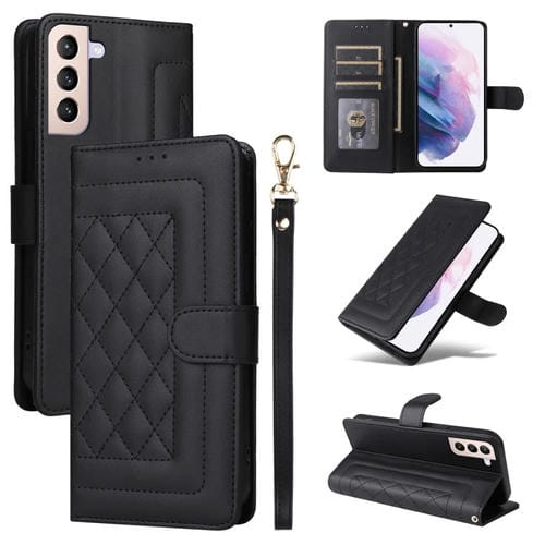 Estuche para Teléfono Samsung Galaxy S21+ 5G Tapa Cuero Entramado Diamantes (Negro)